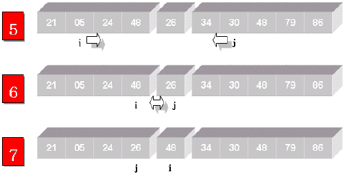 ÇÏÇÑÀ§Ä¡°ª(30)ÀÌ Áß°£À§Ä¡°ª(26)º¸´Ù ÀÛÁö ¾ÊÀ¸¹Ç·Î ±×´ë·Î ÇÏÇÑÀ§Ä¡´Â ±×´ë·Î µÎ°í, »óÇÑÀ§Ä¡°ª(48)ÀÌ Áß°£À§Ä¡°ª(26)º¸´Ù Å©¹Ç·Î »óÇÑÀ§Ä¡¸¦ ¿ÞÂÊÀ¸·Î ¿Å°Ü(j=j-1) »óÇÑÀ§Ä¡°ªÀÌ 05°¡ µË´Ï´Ù. ÇÏÇÑÀ§Ä¡°¡ 1ÀÌ°í »óÇÑÀ§Ä¡°¡ 6ÀÔ´Ï´Ù. ÇÏÇÑÀ§Ä¡°¡ »óÇÑÀ§Ä¡º¸´Ù ÀûÀ¸¹Ç·Î ¼·ÎÀÇ À§Ä¡°ªÀ» ±³È¯ÇÕ´Ï´Ù.